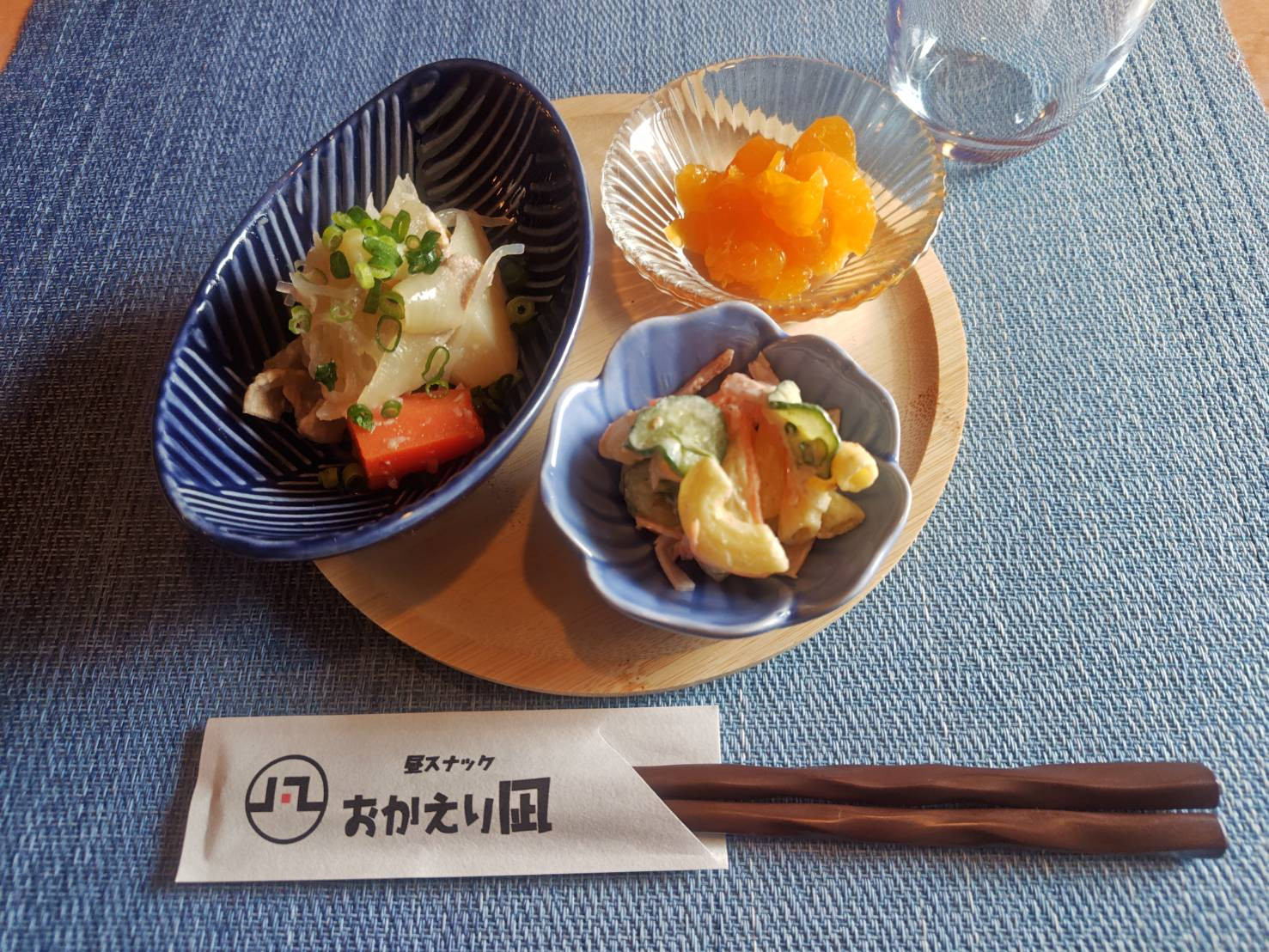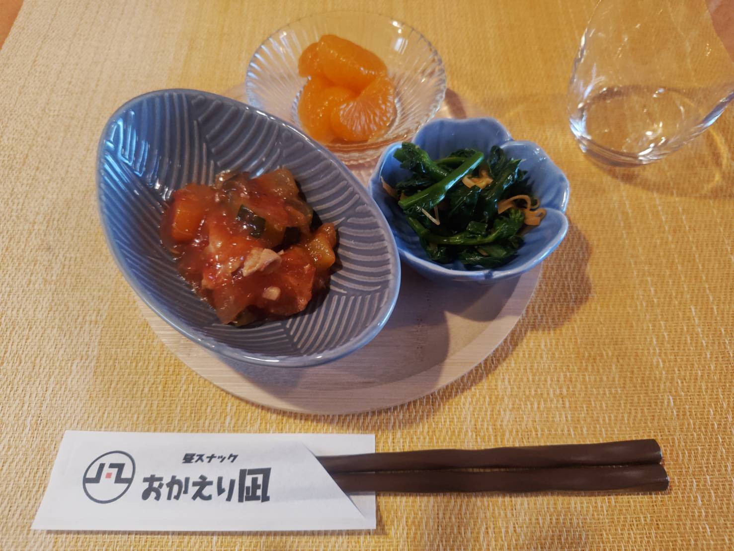餅巾着、スパサラ、みかん
