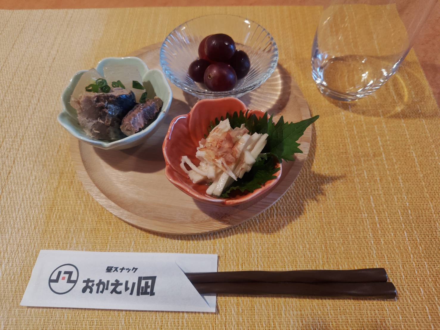 さばと大根の煮物、山芋の千切り、ぶどう