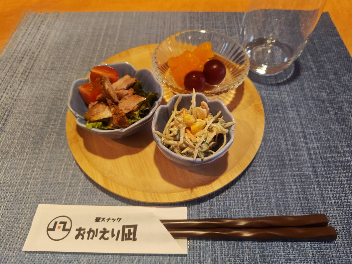 シュウマイ、野菜のナムル、ぶどう